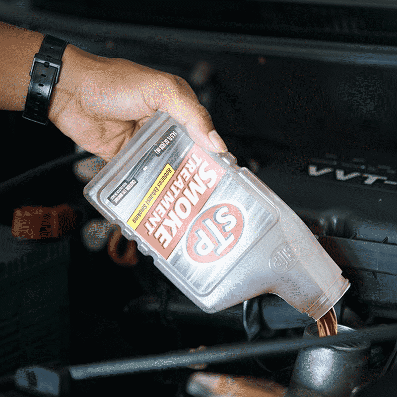 Beberapa hal di atas bisa jadi menjadi biang kerok munculnya asap yang keluar melalui kenalpot. Kami sarankan Anda menggunakan salah satu produk andalan dari STP, yaitu STP Smoke Treatment. Dengan menggunakan STP Smoke Treatment, knalpot mobil Anda akan berhenti mengeluarkan asap berlebih. STP Smoke Treatment memiliki formula yang berguna untuk mengurangi asap dan membantu mengurangi gesekan dengan memberikan bantalan oli yang tebal yang menjadikan performa mesin kendaraan Anda lebih baik. Lebih mantapnya lagi, STP Smoke Treatment juga dapat membantu mengurangi kadar emisi pada kendaraan sehingga kendaraan Anda lebih siap menghadapi uji emisi.